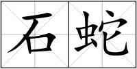 石蛇 [shí shé]修堰时用若干竹笼置石,投水中以遏流,其形蜿蜒如蛇,因称。