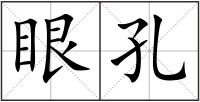 唐 张元一 《又嘲武懿宗》诗:“未见桃花面皮,漫作杏子眼孔。” 元 乔吉 《扬州梦》第二折:“我这害酒的渴肚囊,看花的馋眼孔,结下的欢喜缘,可着他廝重。” 谭作民 《噩梦》诗:“蘧然奋醒一大梦,手挽 东海 洗眼孔。”