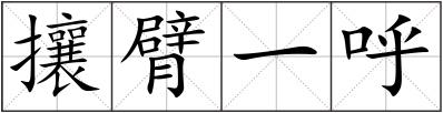 攘臂一呼 [rǎng bì yī hū]攘:挥动。挥动手臂呼喊(多用在号召)。