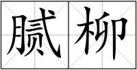 腻柳 [nì liǔ]指 北宋 词人 柳永 。其作品多描绘歌妓生活,文情旖旎,音律谐婉,故有此称。