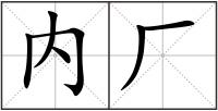 内 : 内nèi里面,与“外”相对:内部。内外。内定。内地。内阁。内行(h俷g )。内涵。称妻子或妻子家