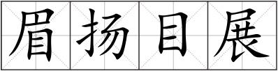 眉扬目展 [méi yáng mù zhǎn]精神振奋貌。清 李渔 《闲情偶寄·词曲下·宾白》:“同一話也,以尖新出之,則令人眉揚目展,有如聞所未聞;以老實出之,則令人意懶心灰,有如聽所不必聽。”