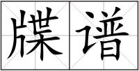 谱 : 谱(譜)pǔ依照事物的类别、系统制的表册:年谱。家谱。食谱。菜谱。谱系(a.家谱上的系统;b