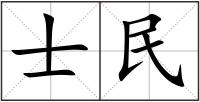 1.古代四民之一。泛指士大夫阶层和普通读书人。 2.士大夫和普通百姓的并称。犹言士庶。 3.泛指人民﹑百姓。 4.犹言军民。