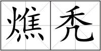 燋 : 燋jiāo引火用的柴。古同“焦”(a.物体经火烧或高热烘烤后变得枯黄或成炭样;b.焦东西的气味;c.