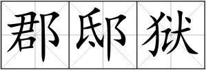 狱 : 狱(獄)yù监禁罪犯的地方:监狱。狱吏。狱卒。地狱。越狱。罪案,官司:冤狱。文字狱。断狱。?