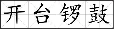 开台锣鼓 [kāi tái luó gǔ]比喻说话或写文章的开头部分。也比喻一个事件的开头。