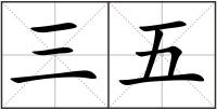 1.谓十五天。《礼记.礼运》:"是以三五而盈,三五而阙。"后以指农历月之十五日。 2.指农历正月十五上元节。 3.谓十五岁。 4.指三十年和五百年。古谓天运三十年一小变,五百年一大变。 5.指三皇五帝。 6.指三王五霸。 7.指三辰五星。 8.指三正五行。 9.指三才五常。 10.指三所五位。 11.指三田五脏。 12.九宫术谓三生五死。 13.指参宿和昴宿。《诗.召南.小星》:"嘒彼小星,三五在东。"王引之《经义述闻.毛诗上》:"三五,举其数也;参昴,着其名也。"旧说以"三五"指心宿和柳宿(噣)。毛传:"三﹐心;五﹐噣。四时更见。" 14.晋时征人服兵役,在部分地区实行五丁抽三制,后因称发人征役为"三五"。 15.约举之数。表示数目不多。