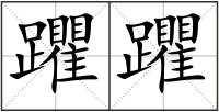 躣 : 躣qú〔躣躣〕(蛟龙)游动的样子,如“左朱雀之茇茇兮,右苍龙之躣躣。”笔画数:25;部首:足
