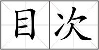目次 [mù cì]书刊上的目录。表示内容的篇目次序。