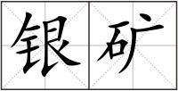 1.亦作"银矿"。 2.含银的矿石﹔采银的矿山。