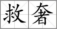 奢 : 奢shē用钱没有节制,过分享受:奢侈。奢靡。穷奢极欲。过分的:奢盼。奢求。奢望。夸张:奢言。
