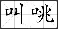叫 : 叫jiào呼喊:叫喊。叫嚣(呼喊,吵闹)。叫阵。叫座(戏曲或演员能吸引观众,看的人多)。叫苦不?