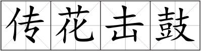 传花击鼓 [chuán huā jī gǔ]游戏的一种。宴会上,人们随鼓声传递花,至鼓声止时,花在谁手即为负,罚饮酒。