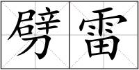 雷 : 雷léi由于下雨时带异性电的两块云相接,空中闪电发出的强大的声音:雷电。雷鸣。雷动。雷雨。雷霆