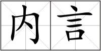 1.妇女在闺房所说的话。 2.古代注家譬况字音用语。对"外言"而言。所谓内外指韵之洪细而言,内言发洪音,外言发细音。《汉书.王子侯表上》:"襄嚵侯建"颜师古注引晋晋灼曰:"音内言嚵菟。"又"猇节侯起"颜师古注引晋晋灼曰:"猇音内言鸮。"北齐颜之推《颜氏家训.音辞》:"而古语与今殊别,其闲轻重清浊犹未可晓,加以"内言""外言""急言""徐言""读若"之类,益使人疑。"王利器集解引周祖谟曰:"所谓内外者,盖指韵之洪细而言。言内者洪音,言外者细音"。一说"内言"非注音术语。参阅龚祖培《内言﹑外言发覆》。