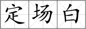 定场白 [dìng chǎng bái]也叫坐场白。戏曲表演程式之一。为剧中角色第一次出场念完“引子”和“定场诗”以后所念的一段独白。用于介绍人物的姓名、籍贯、身世以及当时情境、事件过程等。