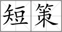 1.短的马鞭。 2.短杖。 3.短的简册。 4.笨拙的策略。亦用为谦词。