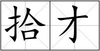 拾 : 拾shí捡,从地上拿起:拾草。拾粪。拾零(捡取某方面的零碎材料,常用于文章标题)。拾取。俯拾皆