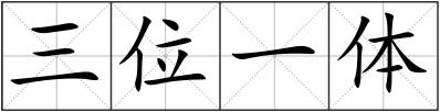 三位一体 [sān wèi yī tǐ]比喻三个人、三件事或三个方面联成的一个整体。