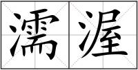 濡 : 濡rú沾湿,润泽:濡笔。濡湿。濡染。耳濡目染。相濡以沫(“沫”,唾沫,喻同处困境,以微薄之力?