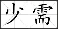 少 : 少shǎo数量小的,与“多”相对:多少。少量。少许。缺,不够:缺少。减少。不经常:少有。少见?