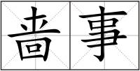 事 : 事shì自然界和社会中的现象和活动:事情。事件。事业。变故:事故(出于某种原因而发生的不幸事?