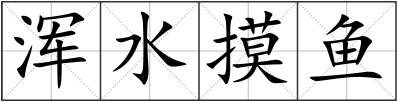 浑水摸鱼 [hún shuǐ mō yú]浑水:不清的水。比喻乘混乱的时候从中捞取利益。