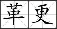 汉 班固 《白虎通·谏诤》:“諫者何?諫,閒也,因也,更也;是非相閒,革更其行也。” 汉 王充 《论衡·道虚》:“好道学仙,中生毛羽,终以飞升,使物性可变,金、木、水、火,可革更也……禀自然之性,非学道所能为也。”