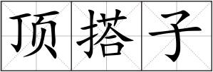 《西游记》第三一回:“只见有两个小孩子,在那里使弯头棍……正戏处,被 行者 赶上前,也不管他是 张 家 李 家的,一把抓着顶搭子,提将过来。”亦省称“ 顶搭 ”。《西游记》第四二回:“就袖中取出一把金剃头刀儿,近前去,把那怪分顶剃了几刀,剃作一个 泰山 压顶,与他留下三个顶搭,挽起三个窝角揪儿。”《醒世姻缘传》第五七回:“ 晁思才 狠狠的在脊梁上几个巴掌,提留着顶搭飞跑。”