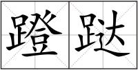 跶 : 跶(躂)dá〔遛跶〕见“〔跳跶〕见“(躂)遛”。跳”。笔画数:13;部首:足;笔顺编号: