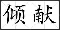 邹韬奋 《经历·前途》:“我要掮着这枝秃笔,挥洒我的热血,倾献我的精诚,追随为民族解放和大众自由而冲锋陷阵的战士们,‘冒着敌人的炮火前进’!” 郭沫若 《落叶》:“有一个可怜的女性倾献她的全身心去爱一位男子。”
