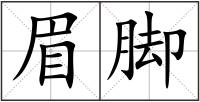 眉 : 眉méi眼上额下的毛:眉毛。眉宇(两眉上面的地方)。眉心。眉目。眉寿(长寿)。眉睫。扬眉吐气。