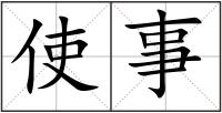 使 : 使shǐ用:使用。使劲。使役。使力。使钱。派,差谴:使唤。使命。使女。让,令,叫:迫使。假?