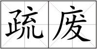 《诗·邶风·旄丘》“旄丘之葛兮,何诞之节兮” 毛 传“兴也” 汉 郑玄 笺:“土气缓则葛生阔节。兴者,喻此时 卫 伯 不恤其职,故其臣於君事亦疏废也。” 汉 蔡邕 《上封事陈政要七事》:“臣自在宰府,及备朱衣,迎气五郊,而车驾稀出,四时至敬,屡委有司,虽有解除,犹为疎废。”wWw.weNTIYI.CoM