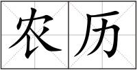 农历 [nóng lì]我国古代历法之一。平年十二个月,大月三十天,小月二十九天,全年354天或355天(一年中哪个月大,哪个月小,年年不同)。由于平均每年的天数比太阳年约差十一天,所以在十九年中设置七个闰月,有闰月的年份全年十三个月(383天或384天,闰月在几月份也没有一定)。又根据太阳的位置,把一个太阳年分成二十四个节气,便于农事。纪年用天干地支搭配,六十年周而复始。俗称阴历。这种历法相传创始于 夏 代,所以又称夏历、旧历。