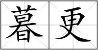 暮更 [mù gēng]指夜晚的时间。更,古代夜间计时单位。