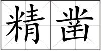 精 : 精jīng上好的白米:“食不厌精”。细密的,与“粗”相对:精密。精细。精确。精制。精读。精选。