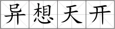 异想天开 [yì xiǎng tiān kāi]异:奇异;天开:比喻凭空的、根本没有的事情。指想法很不切实际,非常奇怪。