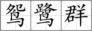 群 : 群qún相聚成伙的,聚集在一起的:群岛。群山。群书。群芳。群居。群落(lu?)。群集。群雕。群蚁?