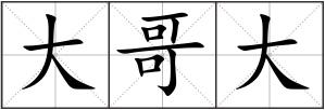 大 : 大dà指面积、体积、容量、数量、强度、力量超过一般或超过所比较的对象,与“小”相对:大厅。大?