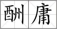 酬 : 酬chóu劝酒:酬酢。用财物报答:酬劳。酬谢。酬金。报酬。交际往来:应(y宯g )酬。酬对。酬和