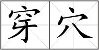 穿 : 穿chuān破,透:穿透。揭穿。穿窬(钻洞和爬墙,指盗贼)。穿凿。通过,连通:穿过。穿行(x妌g