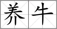 牛 : 牛niú哺乳动物,趾端有蹄,头上长一对角,是反刍类动物,力量很大,能耕田拉车,肉和奶可食,角、