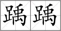 踽 : 踽jǔ〔踽踽〕形容独自走路孤零零的样子,如“踽踽独行”。笔画数:16;部首:足;笔顺编号:2