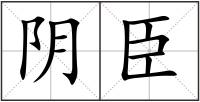 《公羊传·定公十四年》:“城 莒父 及 霄 。” 汉 何休 注:“或説,无冬者,坐受女乐,令圣人去,冬,阴臣之象也。”《后汉书·杨厚传》:“又言阴臣近戚妃党当受祸。” 李贤 注:“阴,私也。” 王先谦 集解引 顾炎武 曰:“阴,私也。阴臣,谓妇人, 惠栋 曰:‘《公羊春秋》云, 定 十四年城 莒父 , 何休 云:“或説,无冬者,受女乐,令圣人去,冬,阴臣之象。”则阴臣为妇人审矣。’注训私,非也。”