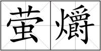 萤 : 萤(螢)yíng〔萤火虫〕昆虫,黄褐色,尾部有发光器。〔萤石〕矿物。具有玻璃光泽,受光或受热?