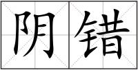 1.古代历数术语。在六十甲子中﹐甲子﹑甲午为阳辰。阳辰之前三辰﹐即甲子之前辛酉﹑壬戌﹑癸亥﹐甲午之前辛卯﹑壬辰﹑癸巳皆为"阴错"。见明王逵《蠡海集.历数》。 2.阴阳家的迷信说法。谓农历正月庚戌﹐二月辛酉﹐三月庚申﹐四月己未﹑丁未﹐六月己巳﹑丁巳﹐七月甲辰﹐八月乙卯﹐九月甲寅﹐十月癸丑﹐十二月癸亥为阴错﹐百事不宜。