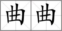 曲 : 曲(⑥麯)qū弯转,与“直”相对:弯曲。曲折(zh?)。曲笔(a.古代史官不按事实、有意掩盖真?