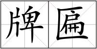 《说岳全传》第二八回:“﹝ 牛皋 ﹞认得牌匾上四个旧金字,是‘寒山古寺’。” 郑观应 《盛世危言·商战》:“赏牌匾以奬其技能。” 萧红 《火线外》:“那是一个医院,门前挂着红十字的牌匾。”WWW.weNTiYI.Com